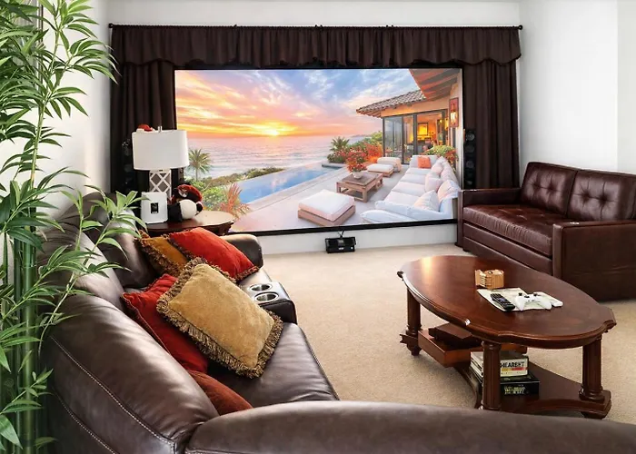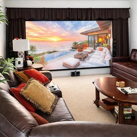 Luxurious 2Br Movie Theater Game Room Full Kitchen Gym offers a sitting area and a fully equipped kitchen, as well as comforts like climate control. The apartment features a bathroom with dryers and towels. Furthermore, a bidet, a separate toilet, and a shower is available.